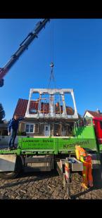 Terrassentür transportieren mit einem Kran