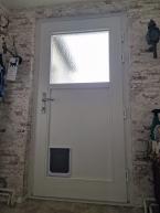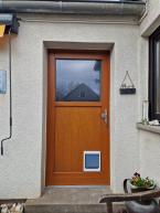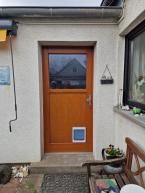 Holztür mit einer Katzenklappe